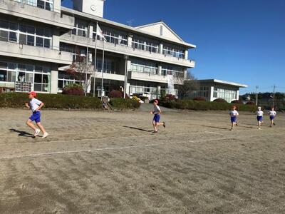子どもたちは、昇降口前の落ち葉掃きが完了すると、次の場所を求めて校庭にかけ出していきました。