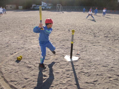 バッティングティーを使って動いていないボールを打つといっても、なかなかうまくいきません。