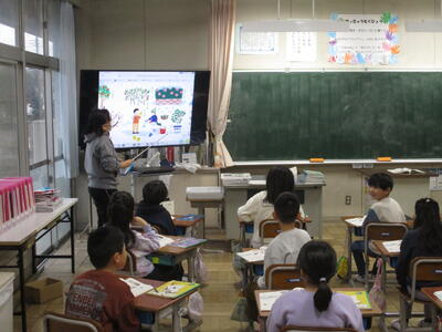 個人のタブレットを使用して一人ひとりに分類作業をさせたかったのですが、今日はちょっとタブレットの調子が今一つだったので、教員機をテレビ画面に映しながら学習を進めました。