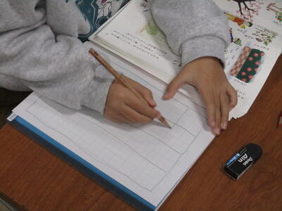 視写する文章の中から、自分で気を付ける部分を決め、特に気を付けて書きます。