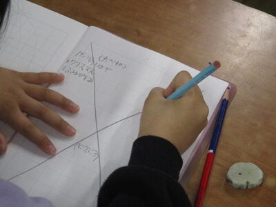 教科書にもありますが、このような思考のための図を使ってグループの話合いをしました。