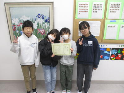 業間の時間に、スポーツ少年団バレー部「石川リトル」さんが大会の結果報告に校長室を訪れました。