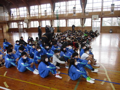 学習指導主任と児童指導主任から冬休み期間中の学習・生活について話をし、校長からは「新しい年に向けた準備のできる冬休みにしよう」と話をしました。