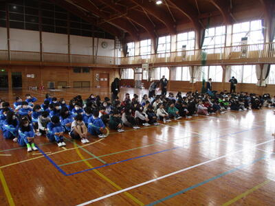 終業式はありませんが、業間に全校集会を実施しました。