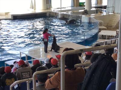 臨海自然教室最後の活動、アクアワールド茨城県大洗水族館での班別活動です。