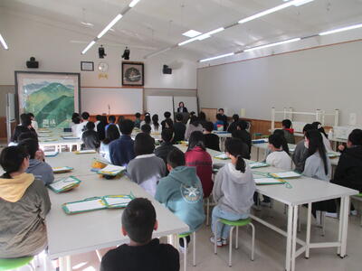 やや緊張気味の6年生たちでしたが、中学校の校長先生や生徒会役員のみなさんの話を聞くうちに、少しずつ緊張もほぐれてきたようでした。