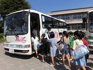 気持ちのよい秋晴れの下、4年生が、1・2年生に見送られながら、元気に板荷の自然体験交流センターに出発しました。今日は川の活動が予定されているので、天気に恵まれてよかったです。3日間みんな元気に楽しく活動してくることを願っています。
