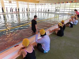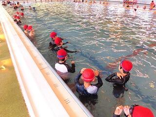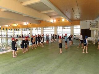 4~6年生みんなで、プールの中を大きな円を描くように歩いて水流を起こし、流れるプール遊びをしました。その後、いろいろな泳ぎ方を練習して、充実した時間を過ごしました。