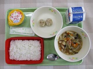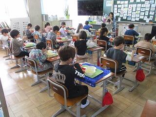 楽しみな給食の時間です。給食当番がしっかり配膳していました。友達の誕生日を牛乳で乾杯してお祝いしていて、とてもほほえましかったです。