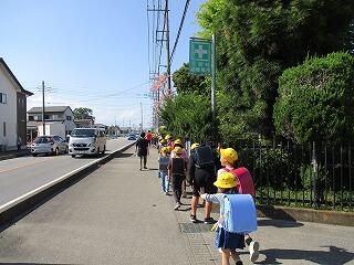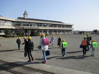 今日から1年生も上級生と一緒に下校します。通学路の危険個所の確認もかねて、本校職員も一緒に歩きました。交通量の多い学区なので、交通安全に気をつけて登下校してほしいと思います。地域の皆様、よろしくお願いします。
