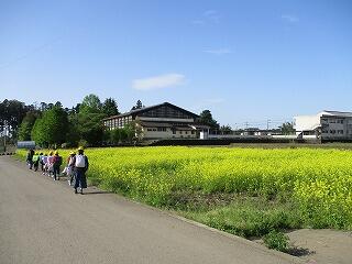 菜の花がきれいに咲く中、1年生は全員元気に登校してきました。