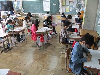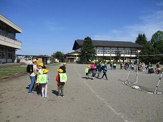 1年生が通学班で元気に登校してきました。見守りをしてくださった保護者の皆様ありがとうございました。教室では、6年生が1年生の面倒をみていて感心しました。新型コロナウイルス感染症対策をしっかりしながらも、縦のつながりを大切にしていきたいと思います。
