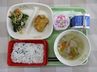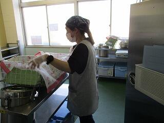 毎日給食ボランティアの皆様が来てくれるので大変助かっています。片付けのときは、給食委員会の出番です。みんなとてもよく働いていて感心です。ちなみに今日は「入学お祝い献立」でした。1年生のみなさん、給食はおいしく食べられましたか?