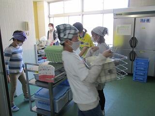 給食が配送される形になっての初日で、早速給食ボランティアの皆さんが作業をしてくださいました。届いた給食を各学年のワゴンに分ける作業が授業時間と重なっているため、ボランティアの皆さんがいなかったら、かなり厳しい状況だということを痛感しました。給食ボランティアの皆さんのおかげで、おいしい給食が食べられます。これからどうぞよろしくお願いします。