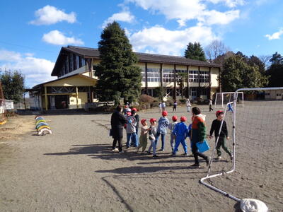 様々な遊びで、上級生も下級生も関係なく、なかよく遊ぶ子どもたち。