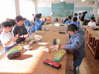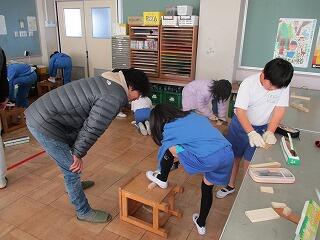 3年生が、図工の学習としては初めて、のこぎりを使いました。子どもたちが安全に楽しくのこぎりが使えるように、学習支援ボランティアのお父さんが見てくれました。仕事が忙しいにもかかわらず、子どもたちのために時間をとっていただき感謝しています。おかげさまで、けがをせず、楽しく工作ができました。