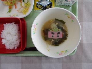 今日の給食は、節分献立でした。どさんこ汁を食べていたら、かわいい鬼のかまぼこが出てきました。「ラッキーかまぼこ」だそうです。残念ながら全員分は無いということなので、入っていた人は本当にラッキーでした。教室をのぞいたら、福豆を投げている子がいなくてラッキー(?)でした。