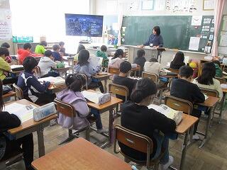 3年生がそろばんに挑戦しました。そろばんも昔の道具の仲間入りを果たし、初めて使う子がほとんどでした。今日は学習支援ボランティアの皆さんが丁寧に教えてくださったので、たし算、ひき算のやり方もよく分かったようです。楽しそうにそろばんをはじいている姿を見て、アナログ世代としては、ちょっとうれしく思いました。