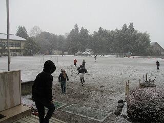 暖冬なので今年は雪が降らないと思っていたら、天気予報通り、お昼から雪が降ってきました。大人には迷惑な雪ですが、子どもたちは大喜びでした。つい濡れないように注意してしまいますが、雪に向かってまっしぐらに走っていく姿は、子ども本来の姿だと思いました。ただ、明日の朝は、交通安全に十分気をつけて登校してきてほしいと思います。