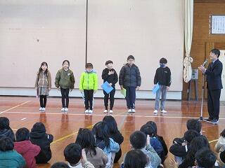 長かった2学期も今日で終わりです。終業式での代表児童の発表を聞いて、2学期の間に本当に大きく成長したなと感じました。明日から冬休みです。感染症予防や交通安全等に気を付けて、楽しい休みを過ごしてほしいと思います。また、3学期の始業式に、みなさんが元気に登校してくるのを楽しみにしています。