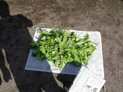 今日は、いく粒かまいた大根が大きくなったので「すぐり菜」をとりました。