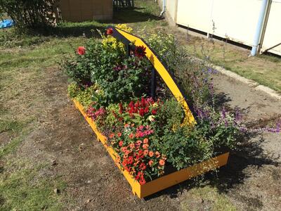 涵養まつりの地域の方の作品、第1号です。(水やりの関係で外にあります・・・。)