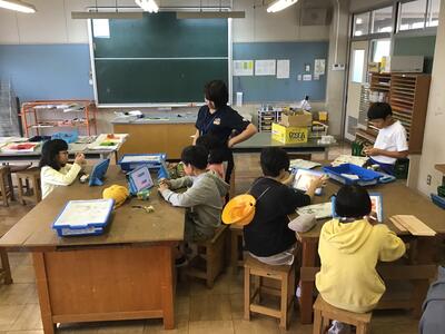 アートクラフトくらぶは、タブレットで絵を描いたり、プログラミングをしたりしていました。