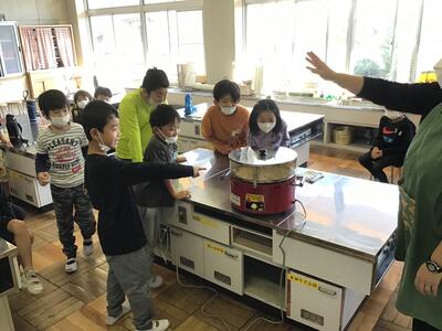 2年生たちが待ちに待った日が来ました。今日はポップコーンを作って食べる日です。