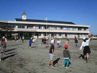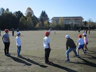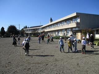 11月なのに少し暑さを感じるぐらいのよい天気でした。秋晴れの下、子どもたちは元気に校庭を走り回っていました。今日の昼休みは、なかよし集会で、それぞれ縦割り班で、三本線やおにごっこ、ドッジボールなどを楽しみました。