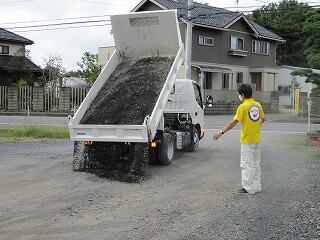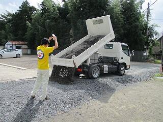 駐車場に入る道に砕石を入れてわだちをならしました。午前中でしたが、学童の先生も来てならす作業を手伝ってくださいました。おかげさまで車が走りやすくなりました。ありがとうございました。