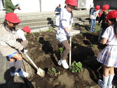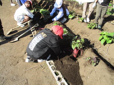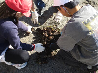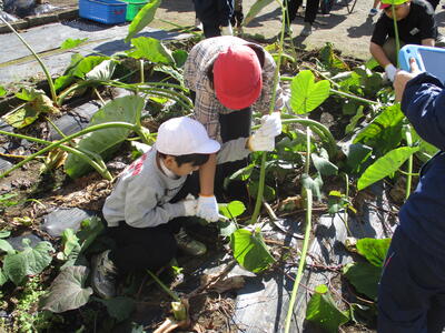 3年生が種芋を植えて育ててきた里芋を掘りました。