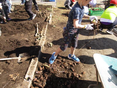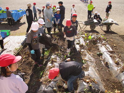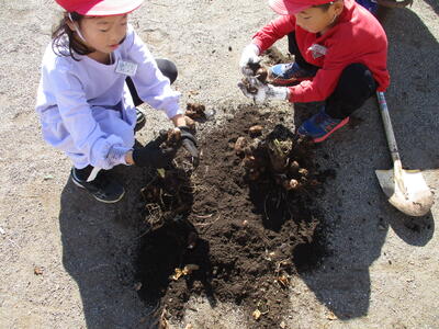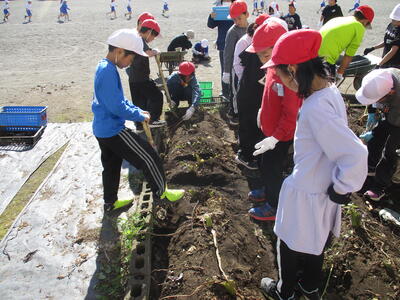 たくさんの里芋を収穫することができました。みんな頑張って働いたね。