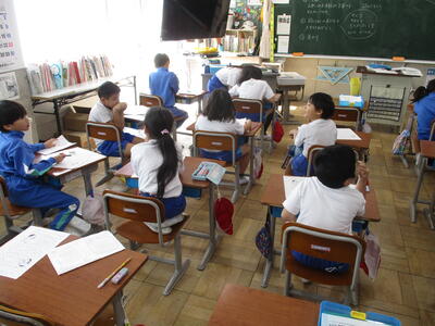 自分の手紙を書き終えた人は、友達の手紙の内容相談にのったり、文章を読んでアドバイスをしたりしました。