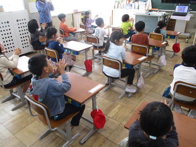 みんなすぐに覚えてしまって、一緒に歌いながら手の洗い方をやってみます