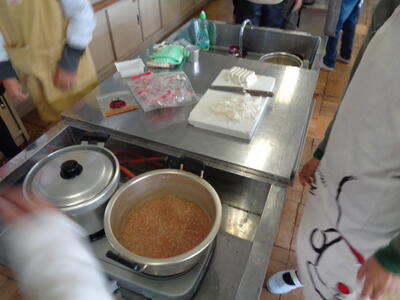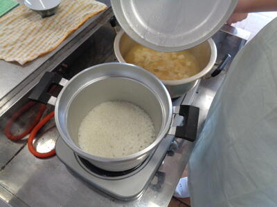 一方、炊飯の準備も進められ、どちらの班も、上手にお米が炊き上がりました。