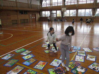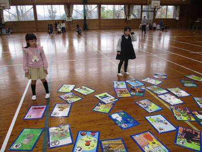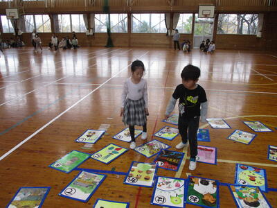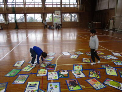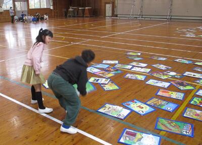 石川小の冬の風物詩「大カルタ」が始まりました。