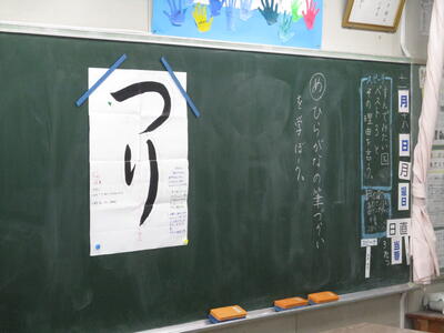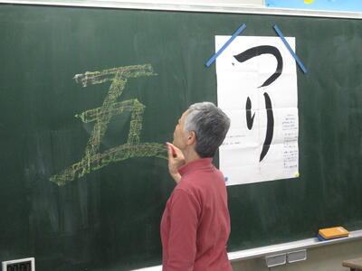 講師の先生に御来校いただき、平仮名「つり」の練習をしました。