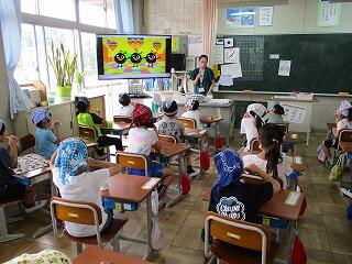ALTのシェラリン先生が来校したときは各学年を順番で回って英語で歯磨きの指導をしてくれています。今日は1年教室に来てくれました。1年生はビデオにあわせて楽しそうにブラッシングしていました。先日歯科検診を実施しましたが、しっかり歯磨きをして虫歯の予防に努めてほしいと思います。
