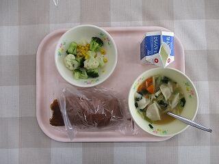 朝の読書の時間に、担任以外の先生が各教室で読み聞かせをしました。「いかりのギョーザ」という楽しいお話でした。そしてお昼の給食に、いかりのギョーザ(?)が出ました。絵本の「いかりのギョーザ」を思い浮かべながら、みんなでなかよくほおばりました。