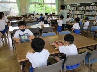 1年生が図書室を利用していたので写真を撮りにいったら、すでに2回目の利用だと聞いてびっくりしました。たくさん図書室を利用して、本が好きな子どもになってほしいと思います。昨年度同様、石川小の図書支援員は、齋藤先生です。今年度もよろしくお願いします。