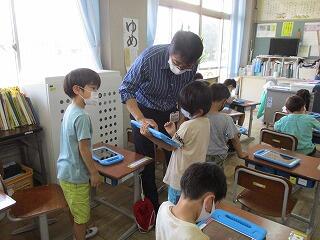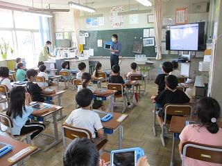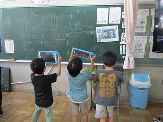 今日はICT支援員の永山先生が来校して、1年生にタブレットの使い方を教えてくれました。1年生はタブレットを使って写真を撮るなど楽しく活動していました。タブレットを授業で有効に活用できるように教職員も研修を重ねていきたいと思います。