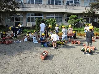 5年生がパンジーの苗を植えてくれました。パンジーは大切に育てれば春まで花を咲かせます。水やりを忘れずにしっかり育ててほしいと思います。春には5年生はいよいよ最上級生になります。パンジーのようにきれいな花を咲かせる6年生になることを期待しています。