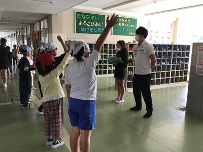 この写真は、掃除の終わりの反省のものです。高学年が中心となってしっかり反省ができているようです。
