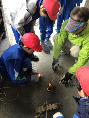 と出てきた黒い粉と煙に盛り上がるグループと、