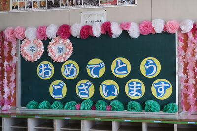 卒業式に向けて、校内掲示を新しくしました。放課後に先生方が、各教室前の飾り付けをしている様子です。