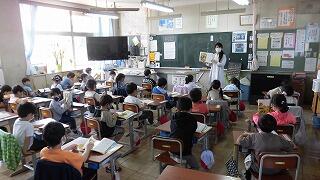 3年生が「まなびタイム」の時間に地元でトマトを栽培している和久井さんを講師に招いて、石川地区の野菜について学びました。野菜を育てるのに大切なことや野菜のひみつについて分かりやすく話をしてくださったので、子どもたちは興味深く聞いていました。3年生は、今日学んだことを生かして、これから苗植えをする予定です。