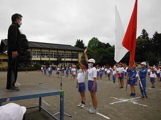 今日から運動会日課になりました。朝の涼しいうちに運動会の練習を行う予定です。初日の今日は、開会式の係の練習でした。すがすがしく晴れた天気の中、子どもたちは張り切って練習に参加していました。新型コロナウイルス感染症対策と熱中症対策を行い、子どもたちの健康に注意しながら進めていきたいと思いますので、よろしくお願いします。