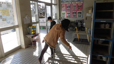 朝の学習の時間に、KVLさんによる大カルタを3年生と4年生が交流をしながら体育館でおこないました。