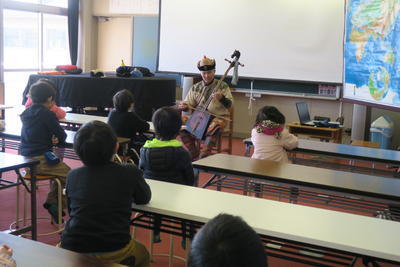 2年生が国語の教科書「スーホーの白い馬」に掲載されている、モンゴルについて勉強しました。実際にモンゴルの方の来校していただき馬頭琴の演奏を聴いたり、伝統衣装を着させていただきました。