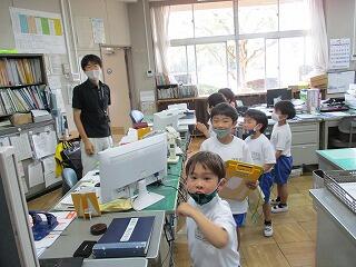 1年生が生活科の学習でグループごとに学校を探検しました。今回探検した教室は「校長室」「職員室」「保健室」「音楽室」「図書室」「理科室」の6か所です。校長室にもかわいいお客さんがたくさんきましたが、「校長先生は何の勉強をしてるんですか?」と質問されてドキッとしました。校長先生も1年生に負けないようにしっかり勉強していきたいと思います。